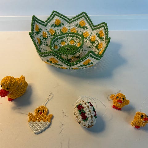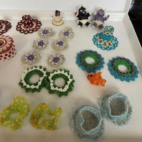 Håndarbejde retro perlessyning perler lysestager lysmanchet