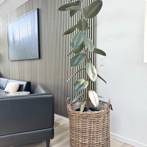 Ficus kunstig plante med grønne blade placeret i en flettet kurv. Velegnet til indendørs brug som dekoration. har 2 stk. pris pr. stk. 200 Kr