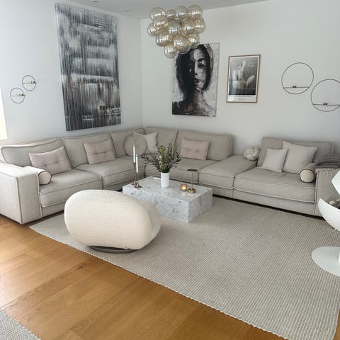 I sædehynderne er der et indlæg af koldskum, med en top af cozy skum og fjer, som giver dig den lækre “flyder” komfort.Mål L 330 x B 255/107 cm | Siddehøjde 42 cm | Siddedybde 72 cm købt i juni 2025 for 16000 i Juni stadig garanti og kvittering - sælges grundet pladsmangel pga. flytning.