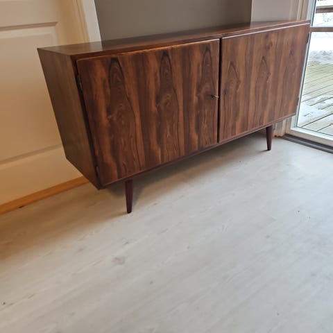 Skænken er produceret i fineret palisander, med eftermonteret ben.