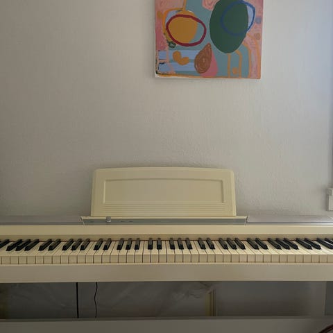 Sælger mit elklaver, da vi har besluttet os for at få et akustisk klaver. Elklaveret har vægtet tangenter, en god lyd og er næsten som.nyt, da vi kun har haft det et par måneder. Der er stadig folie på displayet. Prisen inkluderer udover klaveret oss strømforsyning, justerbar klaverbænk, nodestativ, stativ/ben til klaveret, hovedtelefoner og pedal.