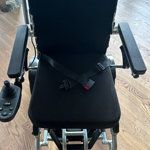 Næsten ny og ubrugt i elektrisk kørestol med justerbar joystickstyring,