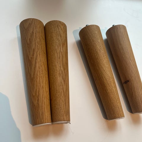 Flotte sengeben i massivt egetræ. Minimalistisk udtryk. En lille smule slid på det ene, men tror det kan vaskes af. 23 cm høje
