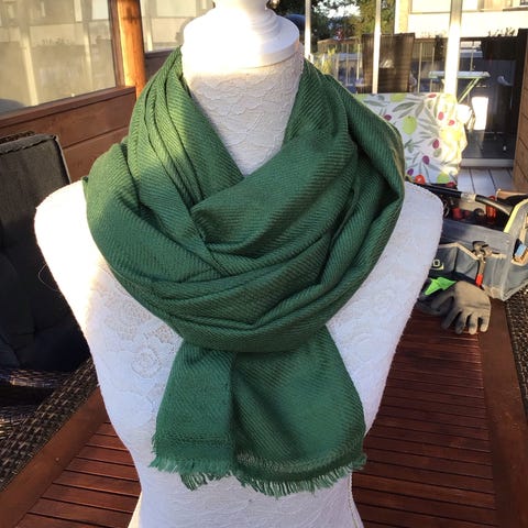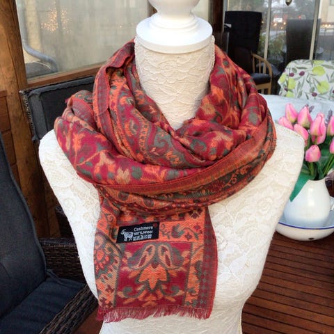 Tørklædet er ubrugt - henter dem selv hjem fra Nepal - derfor den lave pris.