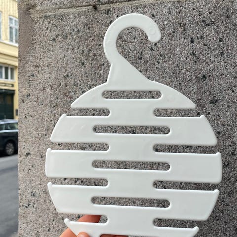 Praktisk til påmontering indvendig på garderobeskabslåge. Med slipselængde kan der hænge 2 stk på en høj låge..