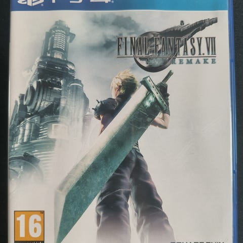Square Enix Final Fantasy VII Remake Playstation 4 spil. Spillet tilhører Playstation 4 platformen og er aldersmærket til 16 år og opefter. Det er et action-rollespil med en ikonisk hovedperson og en historie, der appellerer til fans af genren.