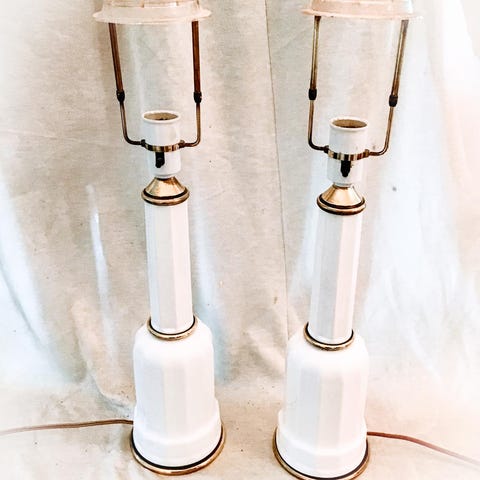 Disse lamper er vintage (min. 50 år gamle) og stammer fra Søholms klassiske periode (ca. 1960'erne/70'erne). De har en elegant, ottekantet form og er udført i hvid, glaseret fajance/keramik med fine messingdetaljer.