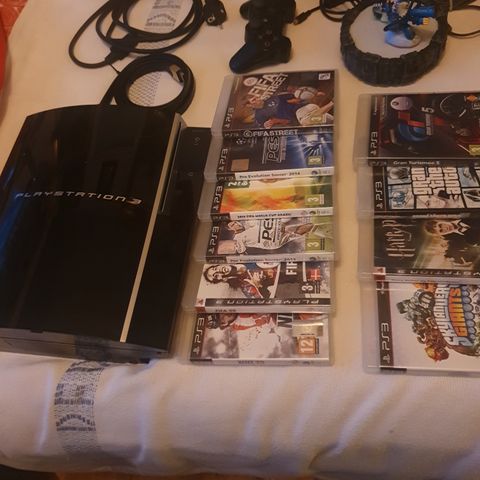 PlayStation 3 + tilbehør, spil og Skylanders – klar til brug