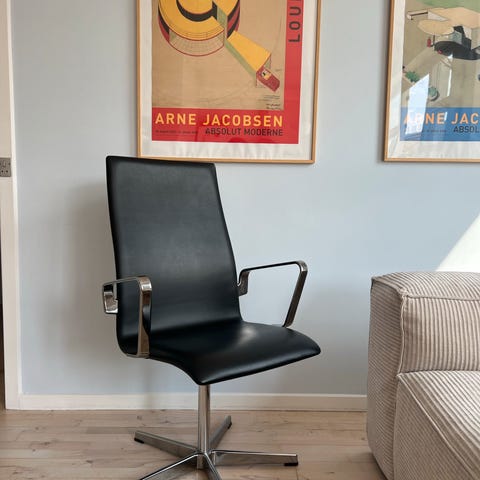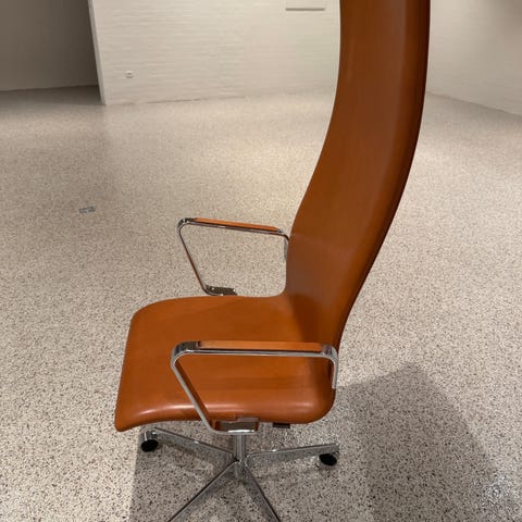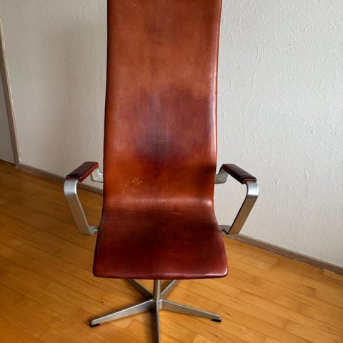 Lækker kontorstol i cognacfarvet skind, kan dreje 360 grader.
