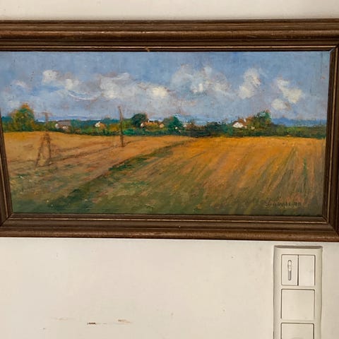 (1264) Maleri af Sigvald Tingkær (født 1928) Landskab i ramme 58 x 48 cm