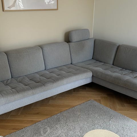 Hjørnesofa Ilva lidt slidt i stoffet men hvis man ligger et lagen over er det som en ny sofa