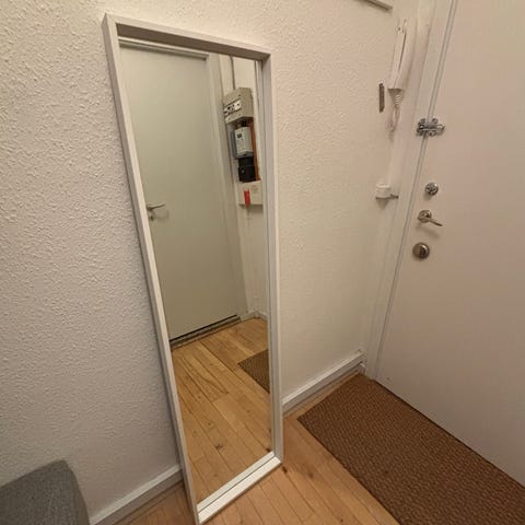 IKEA NISSEDAL spejl i hvid farve. 40x150 cm Spejlet har en enkel ramme og er designet til at blive monteret på væggen. både vandret og lodret