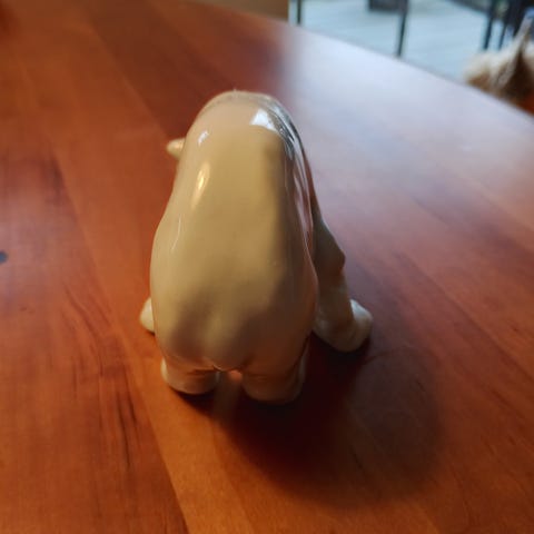 Denne imponerende figur repræsenterer den klassiske dyreserie, som Royal Dux er så berømt for. Den er udført i hvidglaseret porcelæn med fine, realistiske detaljer, der fremhæver dyrets styrke og elegance.