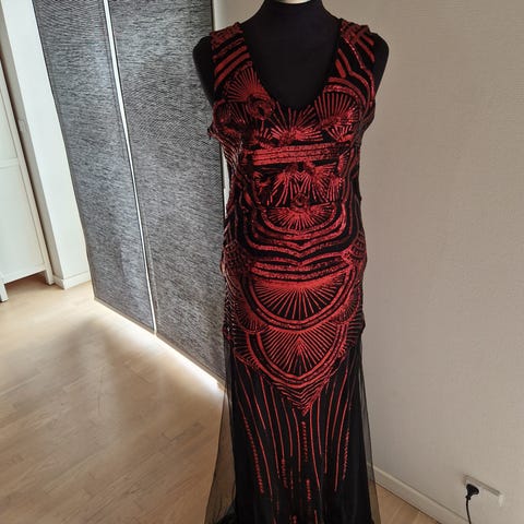 Rigtig fin ældre vintage kjole med håndbroderet bærestykke.