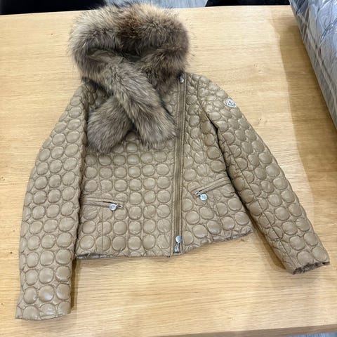 Eksklusiv Moncler Armoise Giubbotto dame dunjakke i sort, blank finish. Klassisk og eftertragtet model med ægte pelskant på hætten. Købt i officiel Moncler-butik på Østergade, København.