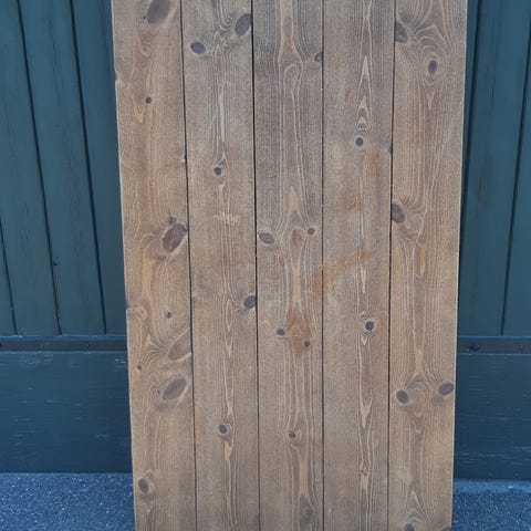 To forskellige træplader sælges. De måler 75,5 cm i højde, 75 cm i længde og 1,5 cm i bredde.