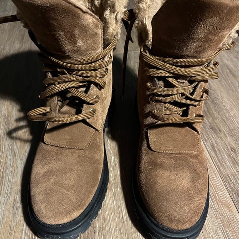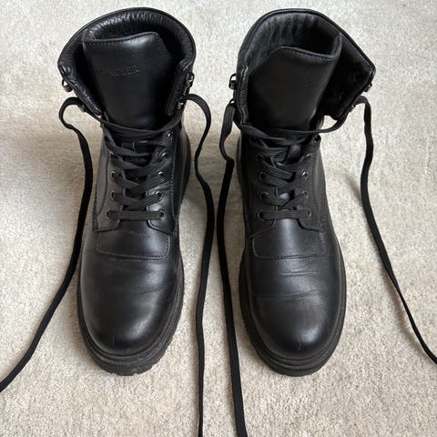 Eksklusive Moncler vinterstøvler i sort læder med kraftig gummisål og varm foring. Klassisk og robust model, perfekt til vinter – både stil og funktion i én støvle.