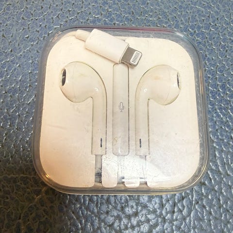 Apple Headset adapter med Lightning-stik. Produktet er designet til at forbinde headset med enheder, der har Lightning-port. Farve: hvid.