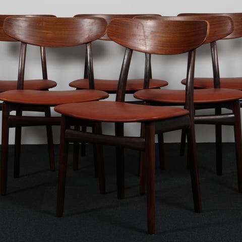 Kæmpe samling Henning Kjærnulf stole, armstol og bord sælges billigt.