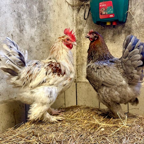 1 hane og 1 høne i hvid/sort columbia dværg wyandot på 7 måneder, nem rolig race perfekt have høne, racen er kendt for at være en godt skrukhøne, samt lægger mange lysebrune æg.