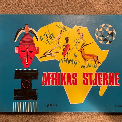 Alga Postrøveriet Afrikas Stjerne brætspil med tema baseret på Afrika. Spillet indeholder spilleplade, spillebrikker, kort og terninger. Egnet til 2-4 spillere, aldersgruppe 8 år og op. Spillet fremmer strategi og interaktion mellem spillere.