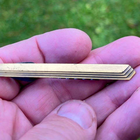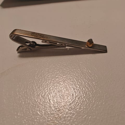 Ny og ubrugt forgyldt slipsenål med snemand i emalje med fire "diamanter"