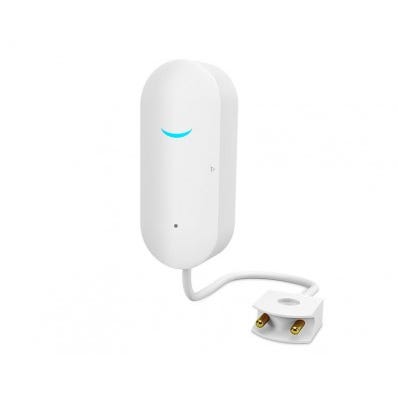 SwitchBot Water Leak Detector med sensor kabel til fjernovervågning af lækager. Enheden kan registrere vandlækager og sende notifikationer, hvilket gør den egnet til brug i hjem eller erhverv for at forhindre vandskader.