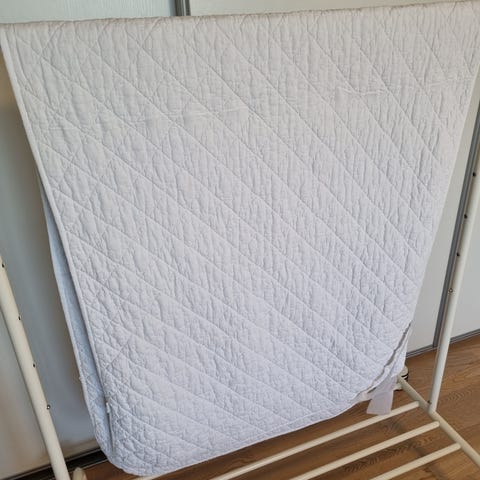 Rullemadras til enkeltseng. Der er elastikker, men de er meget slappe.