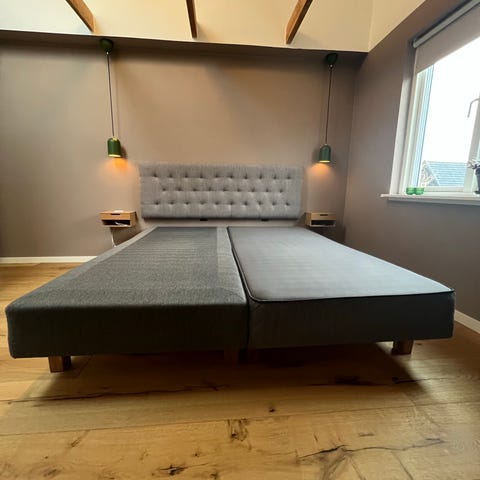 2x boxmadras til salg. Flotte uden pletter. Topmadraser følger med - dem er der dog enkelte pletter på.