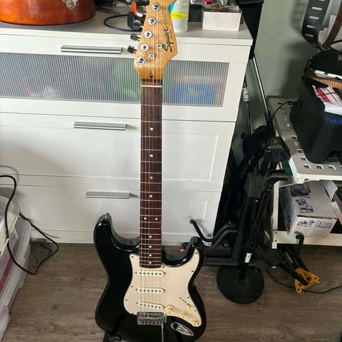Shine vintage Stratocaster i rød. Fed patina. God smal hals og spilbarhed!! Meget guitar for pengene. Lyder godt og er god at spille på.