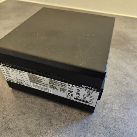 Corsair RM750x computerkomponenter, en strømforsyningsenhed designet til at levere stabil og effektiv strøm til computerhardware.