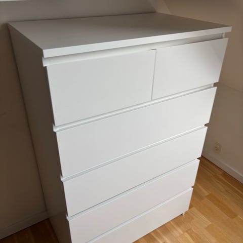 De er fuldt funktionelle på trods af at der er en enkelt eller to skuffe, som har fået et par slag, men det ser man ikke. Der er ridser på toppen på en del af dem og også huller på nogle af siderne, da de har været boret sammen.