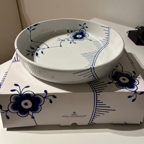 Smukt og elegant ovnfast fad fra Royal Copenhagen i serien Blå Mega Riflet (Blue Fluted Mega).