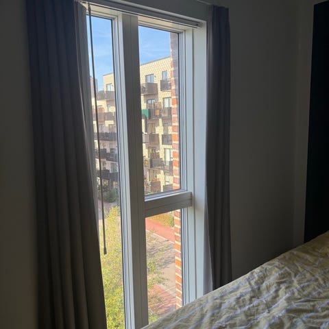 2 Helt tætte mørklægningsgardiner. God stand. Har nogle små fejl i bunden af gardinerne ( Se billede ). Skal lige lægges op. God margen til 175cm længde.