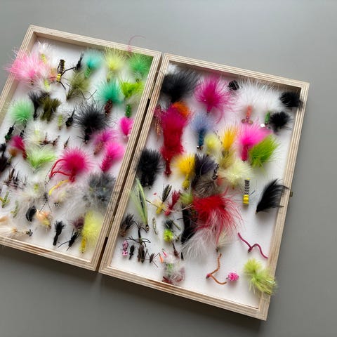 Fiskefluer i sort flueæske