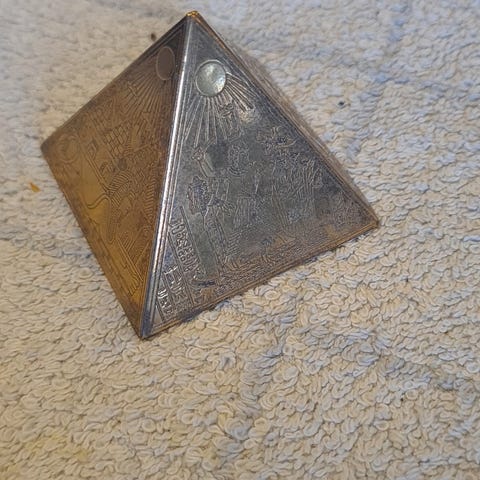 Pyramide skåret ud af selenit, ca. 5x5cm og vejer 103g.
