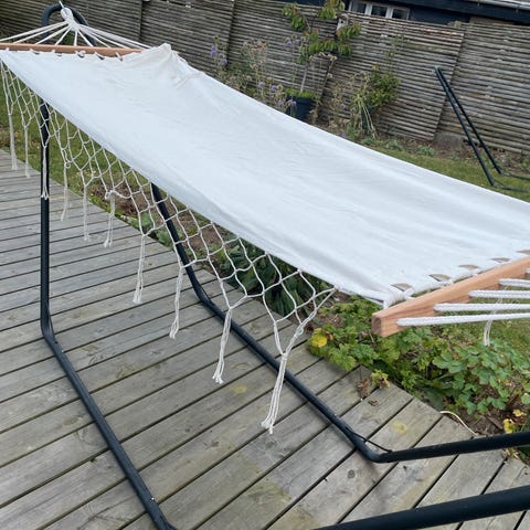 Stabilt loftbeslag til hængekøje og gyngeGør det nemt at hænge din hængekøje, brasilianske stol eller gynge op, præcis hvor du ønsker det. Dette komplette sæt i 304 stål har et hoved, der kan rotere 360°, så bevægelserne føles glatte og behagelige. Perfekt til alt fra hængestole og storkereder til sandsække, sportsudstyr og hængende plantekrukker.Alt du skal bruge - til både inde og udeSættet indeholder drejeligt loftkrog-beslag, karabinhage, snor og fire skruer. De to skrue-typer gør monteringen velegnet i både beton og træ. Maksimal belastning er 300 kg, så du kan trygt hænge en robust stol eller hængekøje op og nyde afslapningen.Komplet monteringssæt til hængekøjer, hængestole og gynger360° drejehoved for jævne bevægelser304 rustfrit stål – egnet til både inde- og udendørs brugMontering i beton eller træ med medfølgende skruetyperHøj bæreevne på op til 300 kgMateriale: 304 stålMaks. belastning: 300 kgHovedrotation: 360°Plade: 7 cm × 4 cmKrog (længde): 9 cmSkrue (længde): 7,5 cmEkspansionsbolt (længde): 7,8 cmKarabinhage: 8 cm × 3,9 cmSnor: 196 cmPakning: 15,5 cm × 10 cm × 4,5 cmSætindhold: dreje-krog, karabinhage, 2 skruer, 2 ekspansionsbolte, snor