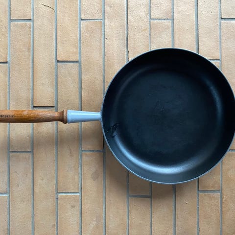 Le Creuset støbejerns stegepande med håndtag. Stegepanden er lavet af støbejern, hvilket giver god varmefordeling og holdbarhed. Den har en rund form med to små tudser på siderne for nem hældning. Velegnet til stegning og tilberedning af forskellige retter. Diameter 25cm.