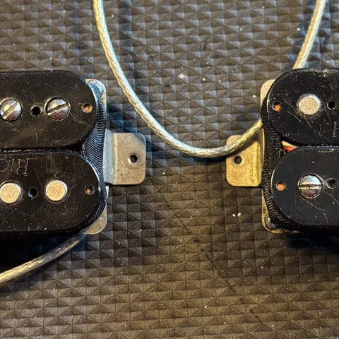 Sættet er komplet og kan enten monteres på medfølgende slagplade eller direkte i guitaren.