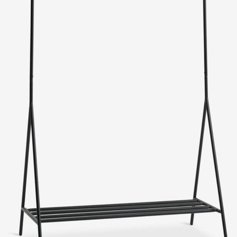Dette tøjstativ er perfekt til teenageren, der smider tøjet på gulvet. Sammen med bøjler skaber dette stativ mere orden på tøjet og det har tilmed en skohylde og er i rigtig god stand. Vi har rykket rundt , så vi ikke bruger stativet mere. Men håber at finde en ny ejer, som bliver glad for det.