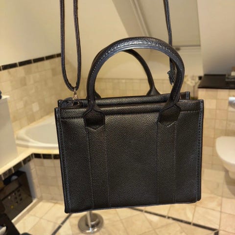 Marc Jacobs læder taske til kvinder med kædedetaljer. Tasken har en sort farve og flere rum til opbevaring. Den er designet til at bæres over skulderen eller som crossbody med justerbar rem.