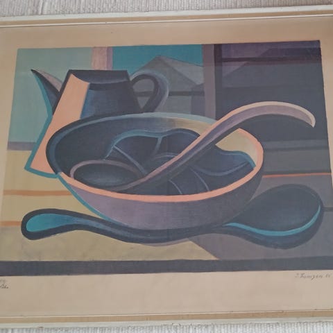 Original litografi / radering af Tom Petersen "Udsigt over Hamborg Havn" = bybillede i ramme med detaljeret bylandskab og kajområde. Indeholder raderede elementer og årstal 1913 - 1915. Indeholder flere etiketter på bagsiden med oplysninger om oprindelse og donation til museet. Mål 67,5 x 54 cm