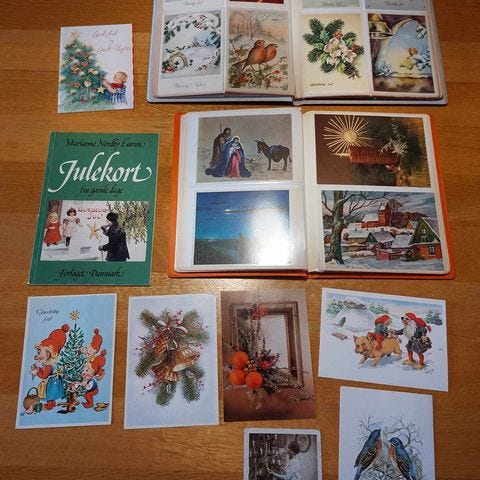 Samling af gamle kort mindst 35 år gamle og ældre. I alt 210 stk. Der er julekort , diddlekort, fødselsdagskort, indbydelser, humørkort, postkort osv. sælges kun samlet.