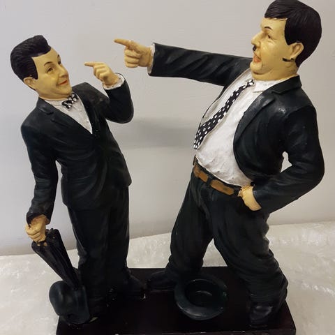 Resin bobblehead of Stan Laurel in his classic suit and trademark hat. It stands approx. 20 cm tall and comes in a window box.