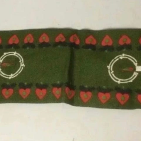 Gl vintage juledug juleløber 62 x 24 cm dug i hessian i meget fin stand. Med rødkælke med røde bær og julemand
