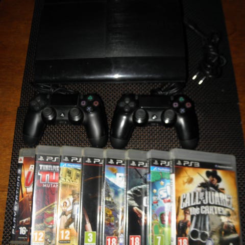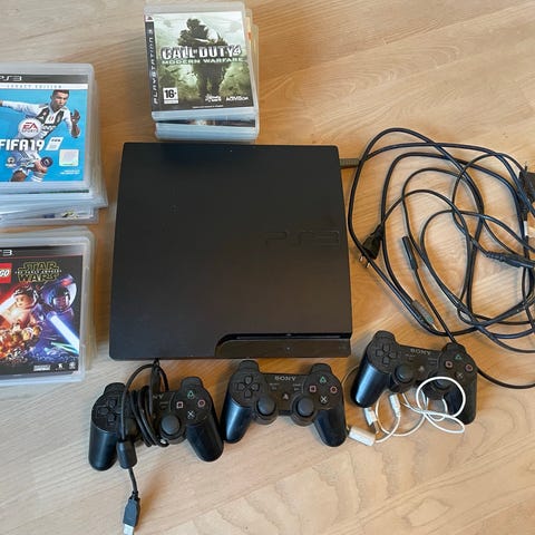 Playstation 3 spillekonsol med harddisk og med to controllere og et udvalg af spil. Inkluderer titler som Gran Turismo 6, Need for Speed, FIFA-serien, Minecraft PlayStation 3 Edition, Transformers, Red Dead Redemption, GTA og en masse legendariske Legospil. Der er portaler til Skylanders og Disney Infinity og en masse figurer. Hygge til sommerhuset, campingvognen eller til farmand der savner sin ungdom.