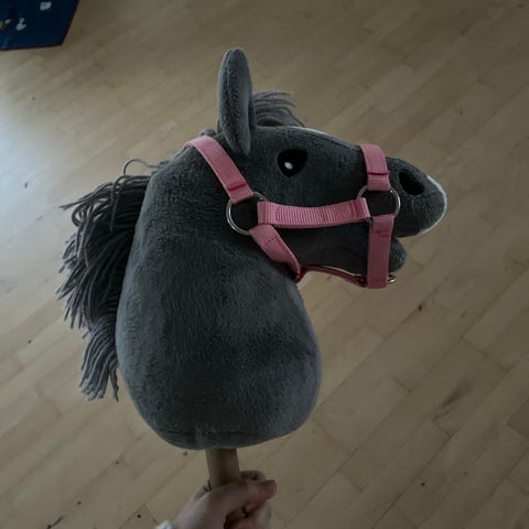 Hje jeg sælger min gamle kæphest. Jeg har kaldt den valentino og jeg synes den er meget smuk. Den er selv dekoreret meget flot og lige. Den sælges til 250kr og med alt udstyret er det 399kr og i er velkommen til at byde