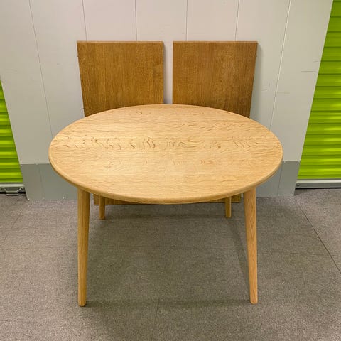 Lækker rundt spisebord i massiv bøgetræ med udtræk, to tillægsplader. H. 73 cm. Tillægsplader 50 cm. Spisebord med plader totallængde 200 cm. Fremstår i super stand. Evt kan lev aftales