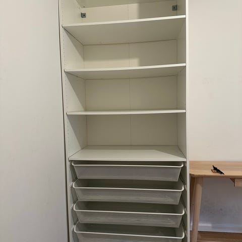 Sælger et IKEA PAX-skab i rigtig flot stand. Skabet er indrettet med 3 skuffer, 2 udtræksskuffer samt bøjlestang.