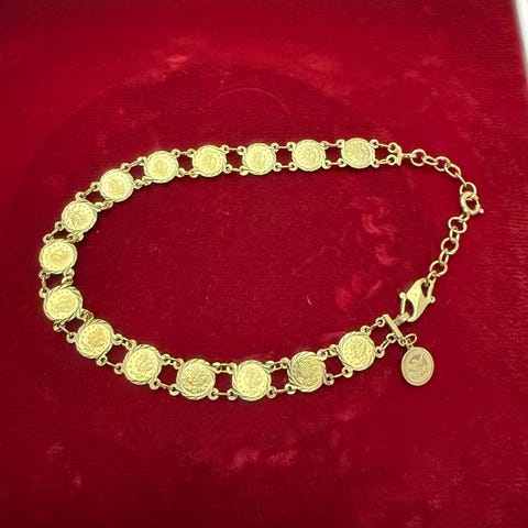 18 k guldarmbånd med grøn perler